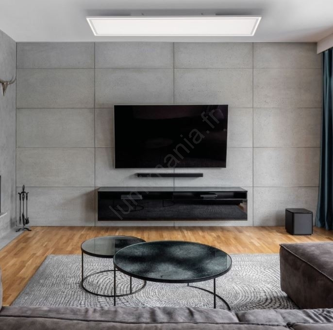 • Le plafonnier dispose de 2 points lumineux, d'un panneau plat et d'un bord extérieur qui peuvent être dimmés séparément.