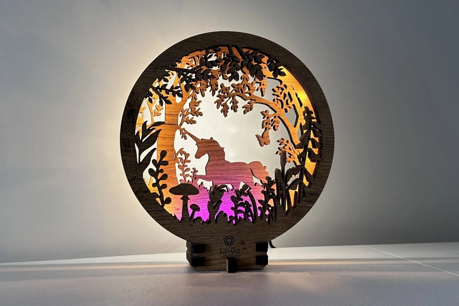 Li-Go 23568/DUB2 - Lampe décorative de table LED dimmable LED/12W/230V 20x22 cm chêne/licorne