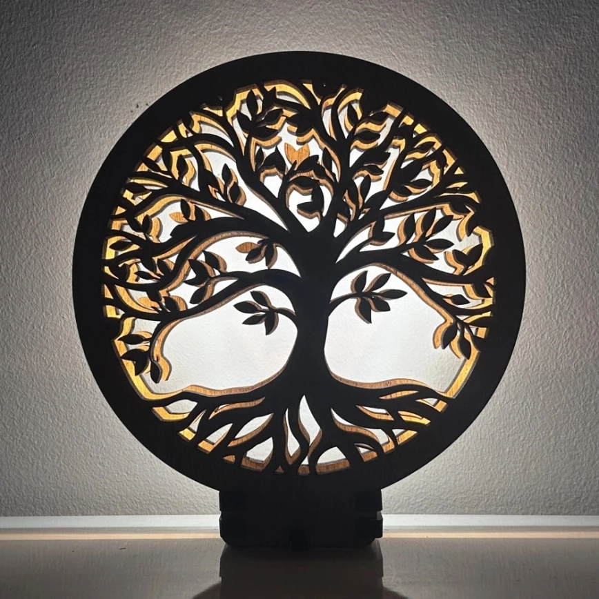 Li-Go 23577/DUB2 - LED Lampe de table décorative à intensité variable LED/12W/230V 20x22 cm chêne/Arbre de vie