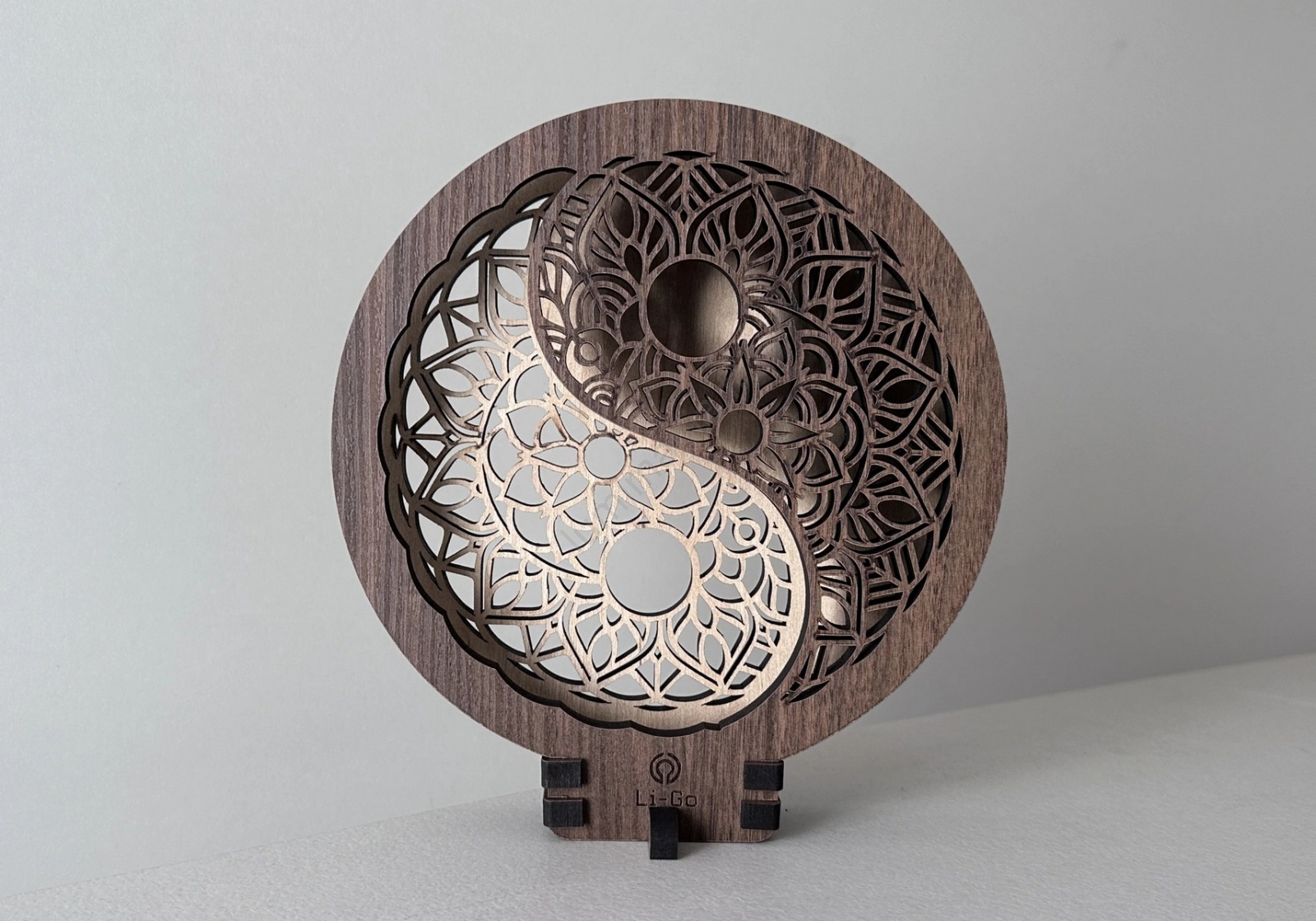 Li-Go 23607/O - Lampe décorative de table à LED dimmable LED/12W/230V 20x22 cm noyer/Yin-Yang