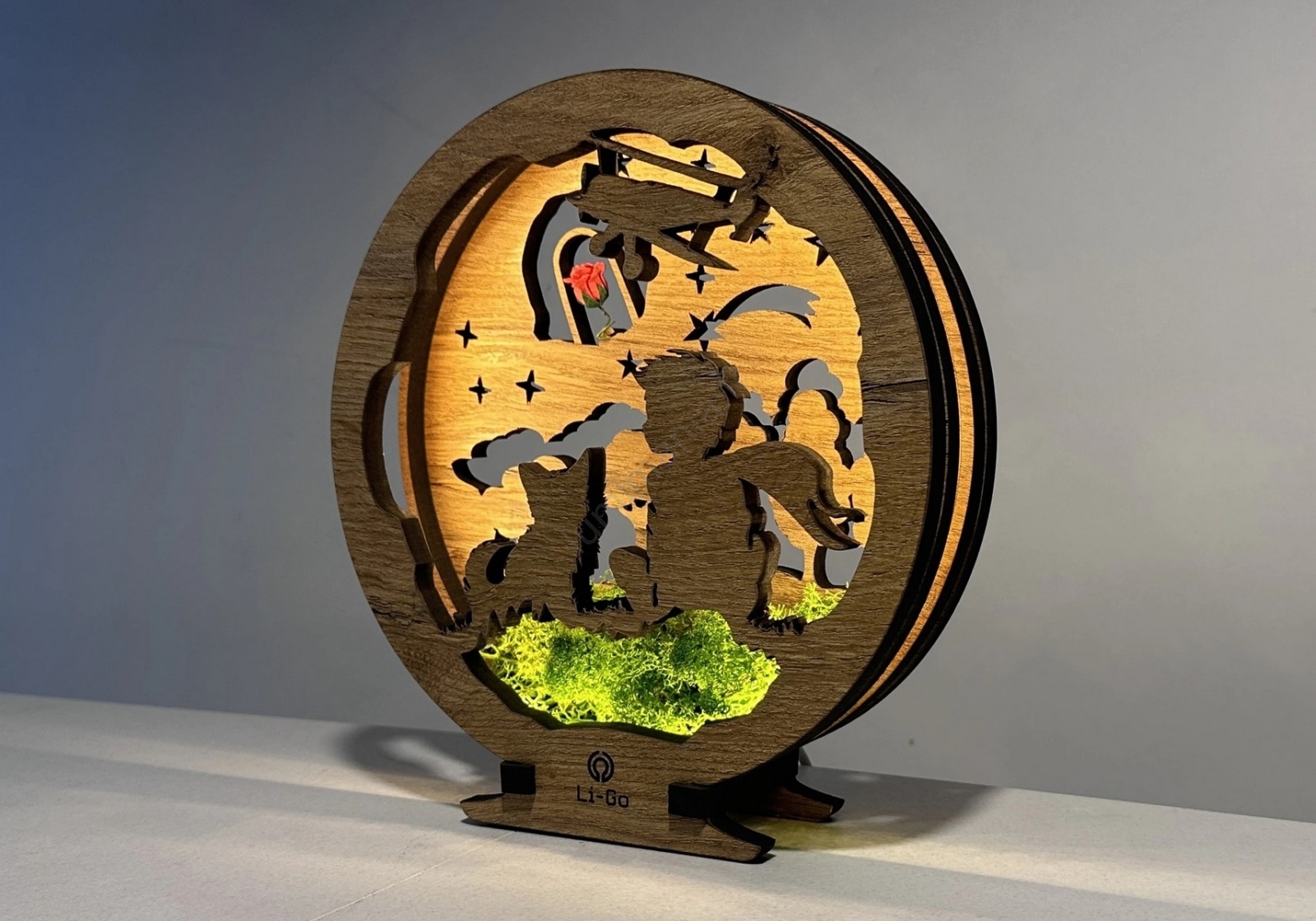 Li-Go 23634/DUB2 - Lampe de table décorative dimmable à LED LED/12W/230V 20x22 cm chêne/Le Petit Prince et sa rose