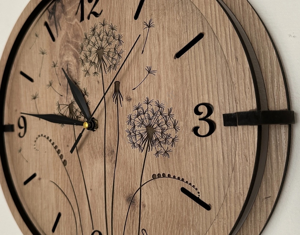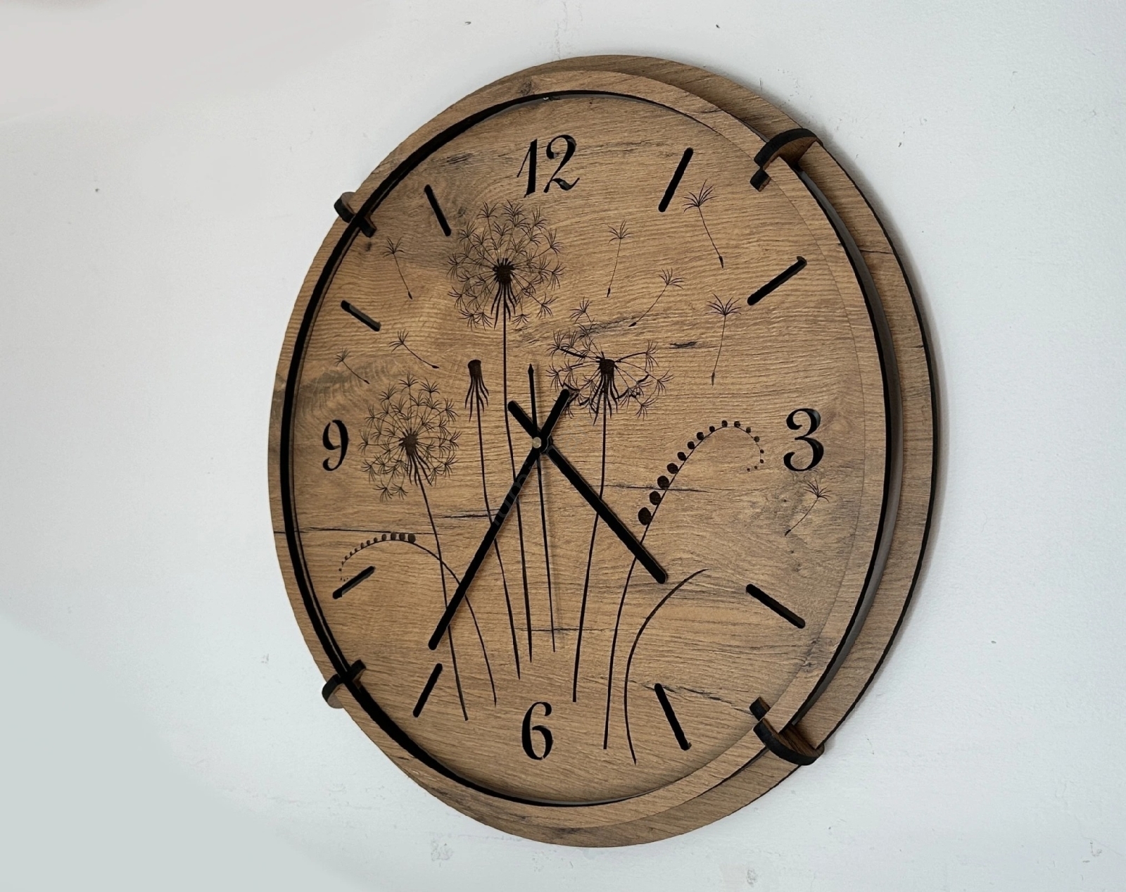 Li-Go 23682/DUB5 - Horloge murale en bois 1 pile AA Ø 32 cm chêne/Pissenlit