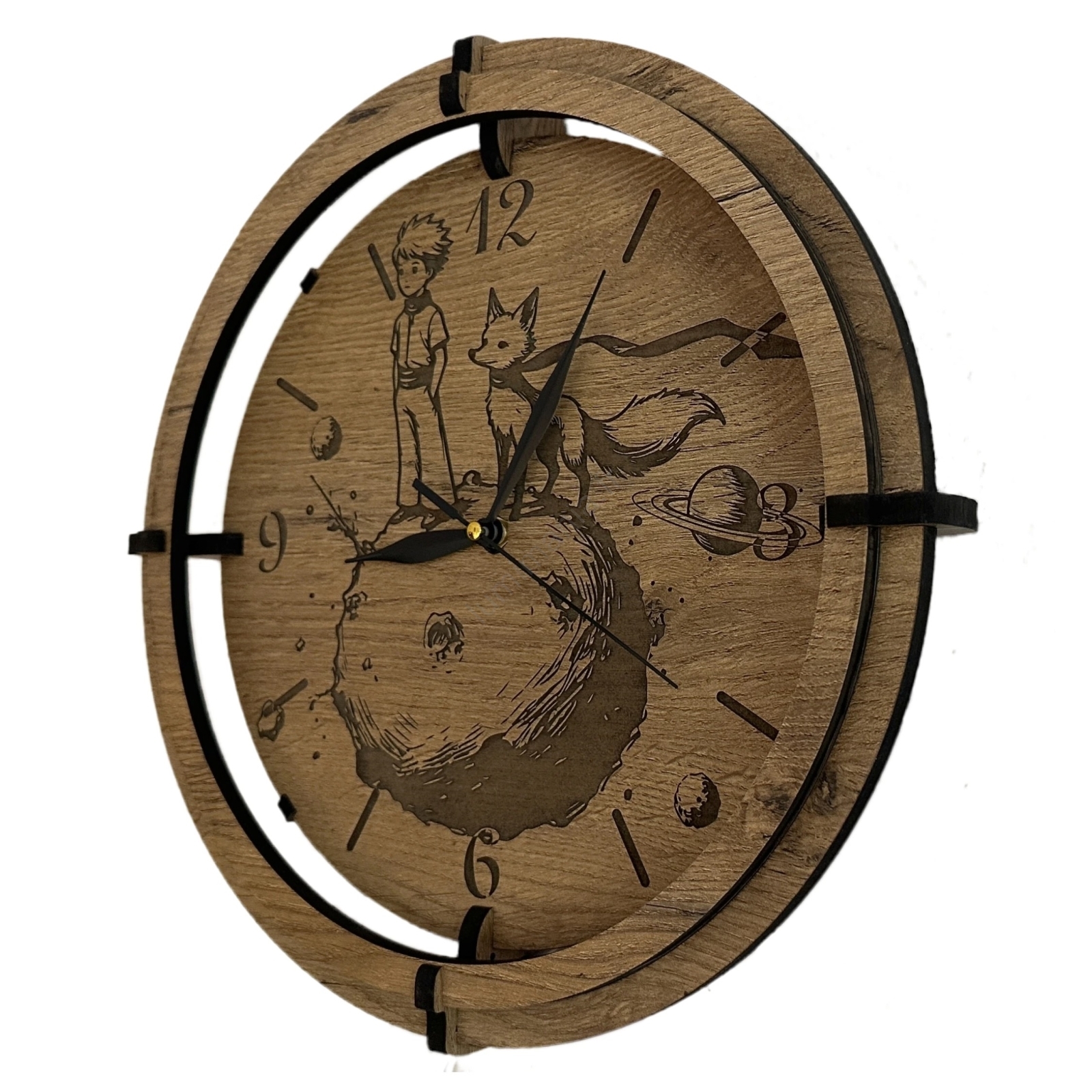 Li-Go 23712/DUB/BAT2 - Horloge LED à intensité réglable avec capteur de mouvement LED/10W/5V 20000 mAh + 1xAA Ø 32 cm chêne/Le Petit Prince