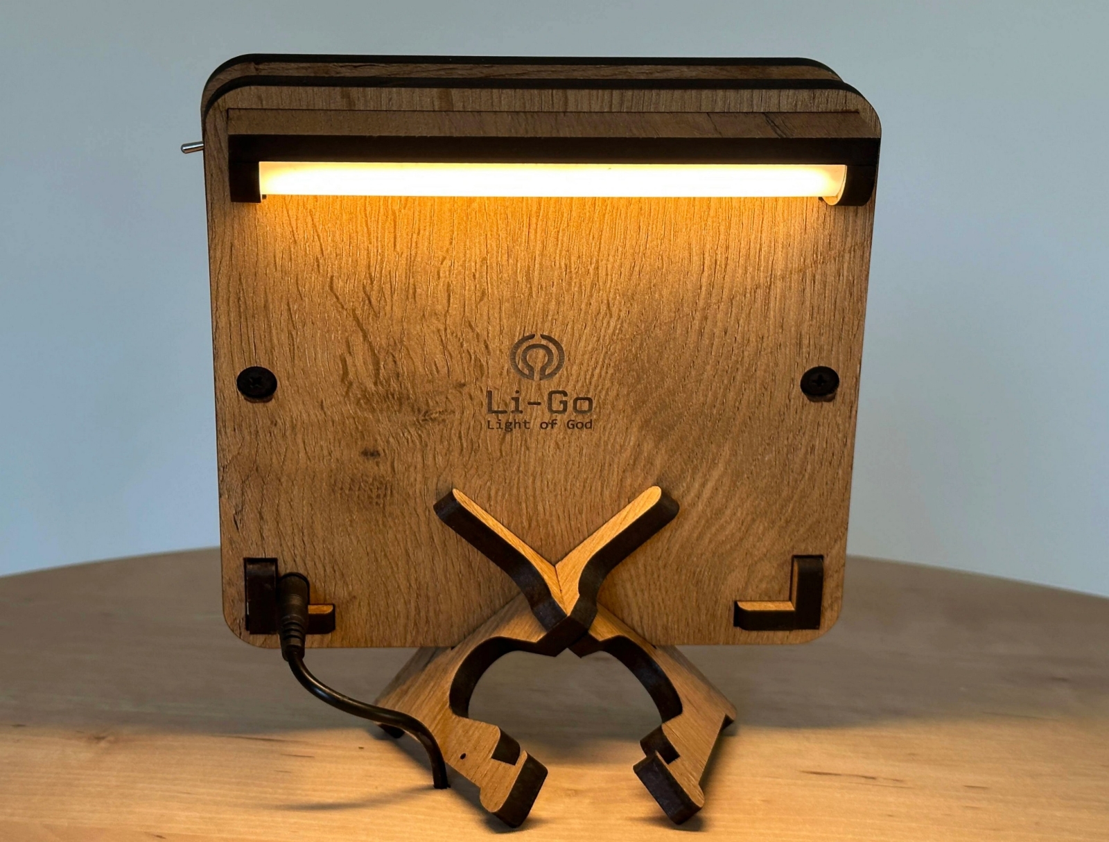 • Un interrupteur à bascule à trois positions est intégré : position 1 — uniquement l'éclairage décoratif sur la face avant (rétroéclairage du motif), position 2 — éteint, position 3 — éclairage décoratif et éclairage direct à l'arrière.