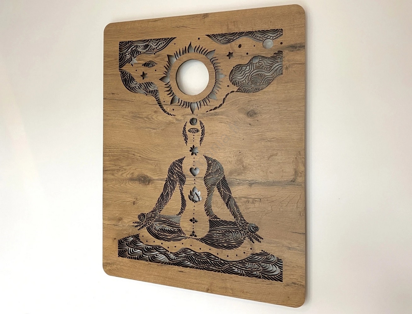 Li-Go 4421/A/4 - Décoration murale LED dimmable LED/10W/5V 30000 mAh 70x90 cm chêne/chakras