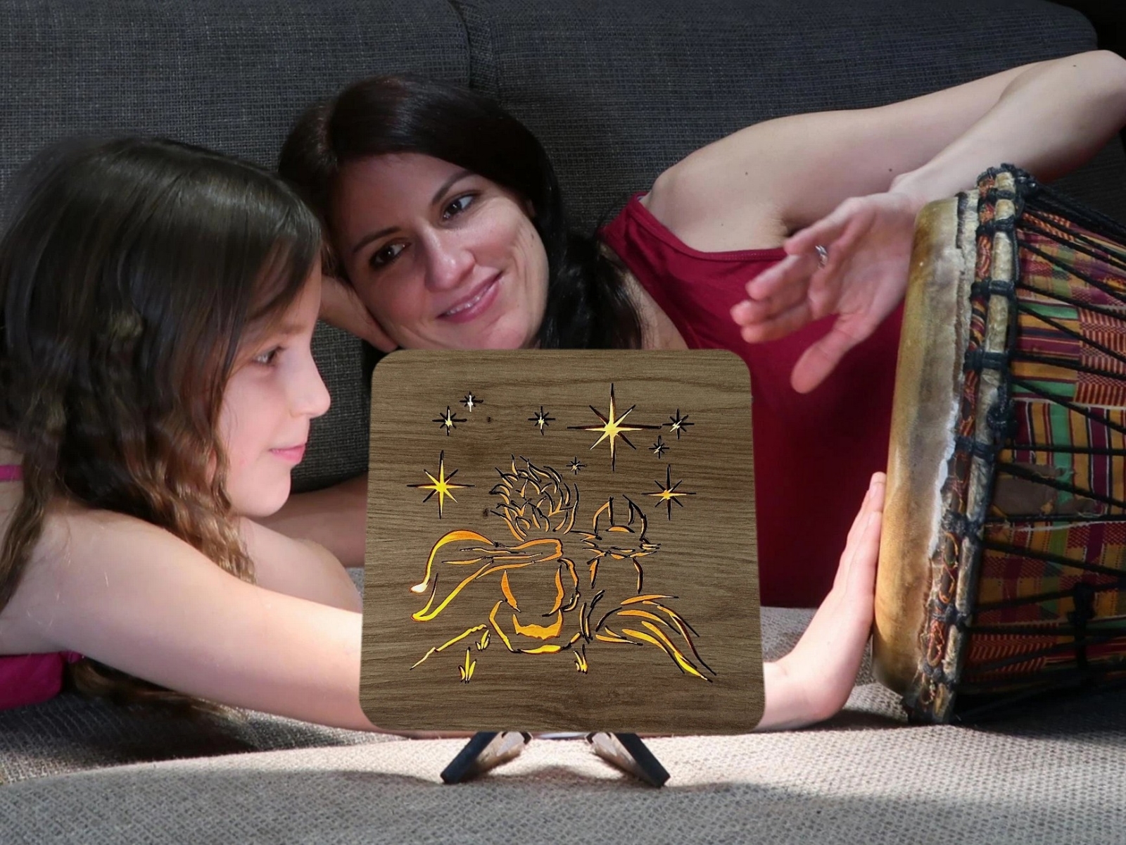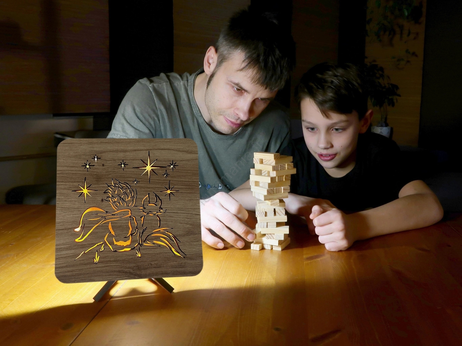 • Lampe LED décorative à motif avec face avant rétroéclairée.
