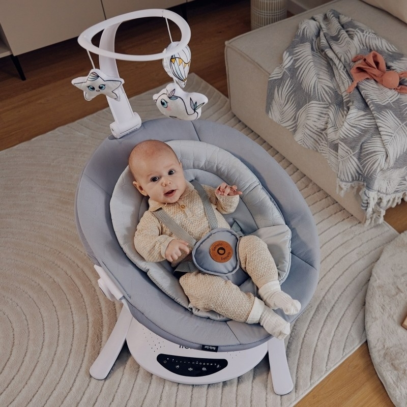 • Lionelo - Balancelle pour bébé BELLA Gris béton avec mélodie + télécommande