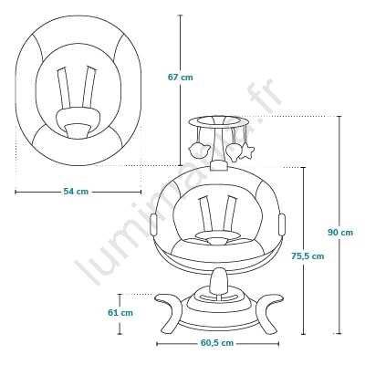 • Mouvement gauche-droite et avant-arrière, 5 vitesses de balancement + 1 mode automatique qui change toutes les 16 secondes.