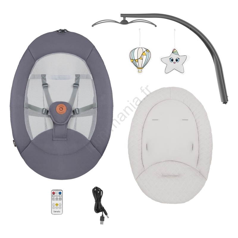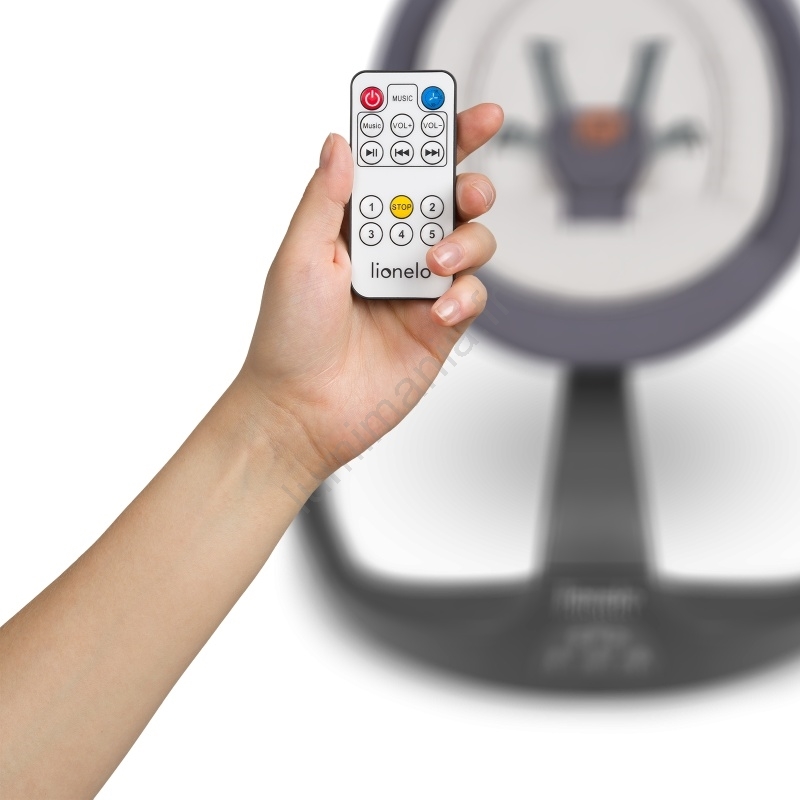 Lionelo - Balancelle musicale pour bébé RINA 4xAA Gris Concrete + télécommande