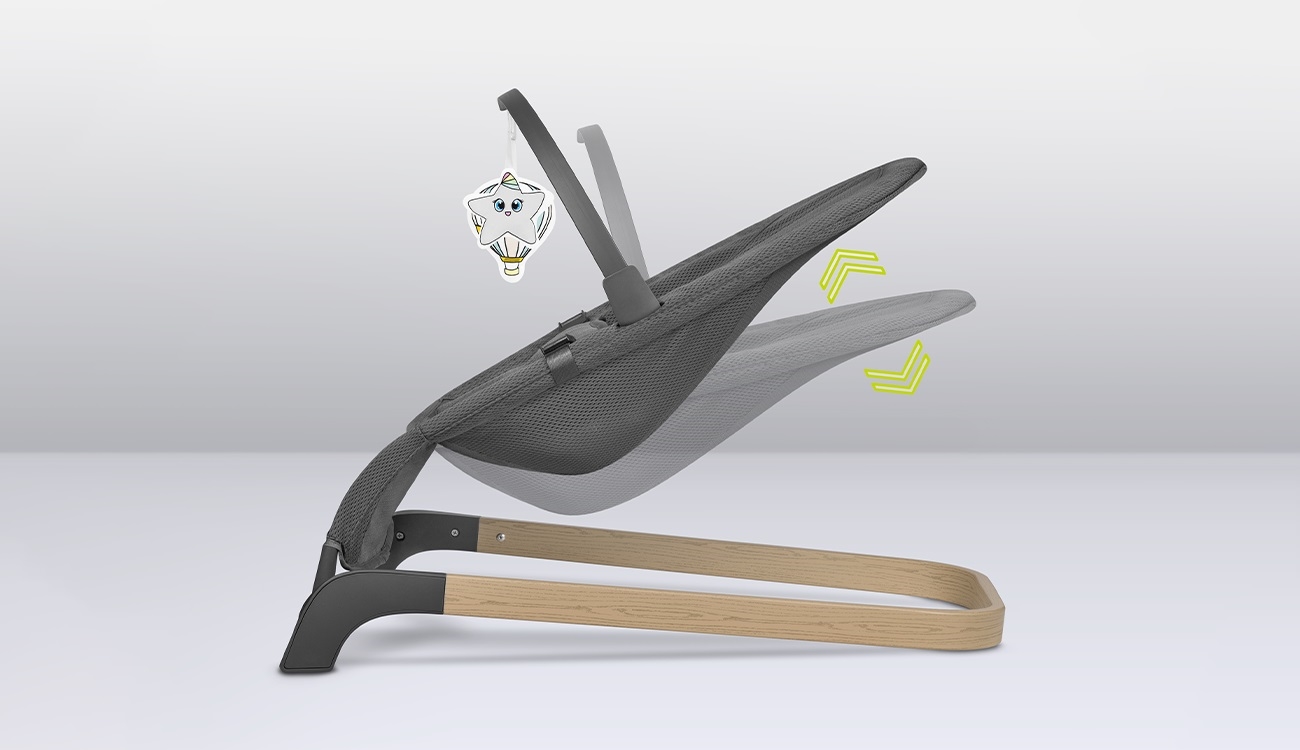 • Le transat à bascule se met en mouvement par les mouvements naturels de l'enfant, développant ainsi la motricité et l'équilibre.