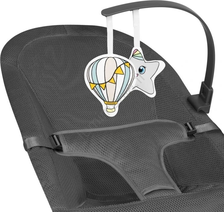 • Arceau amovible avec deux jouets pour capter l'attention et stimuler la motricité.