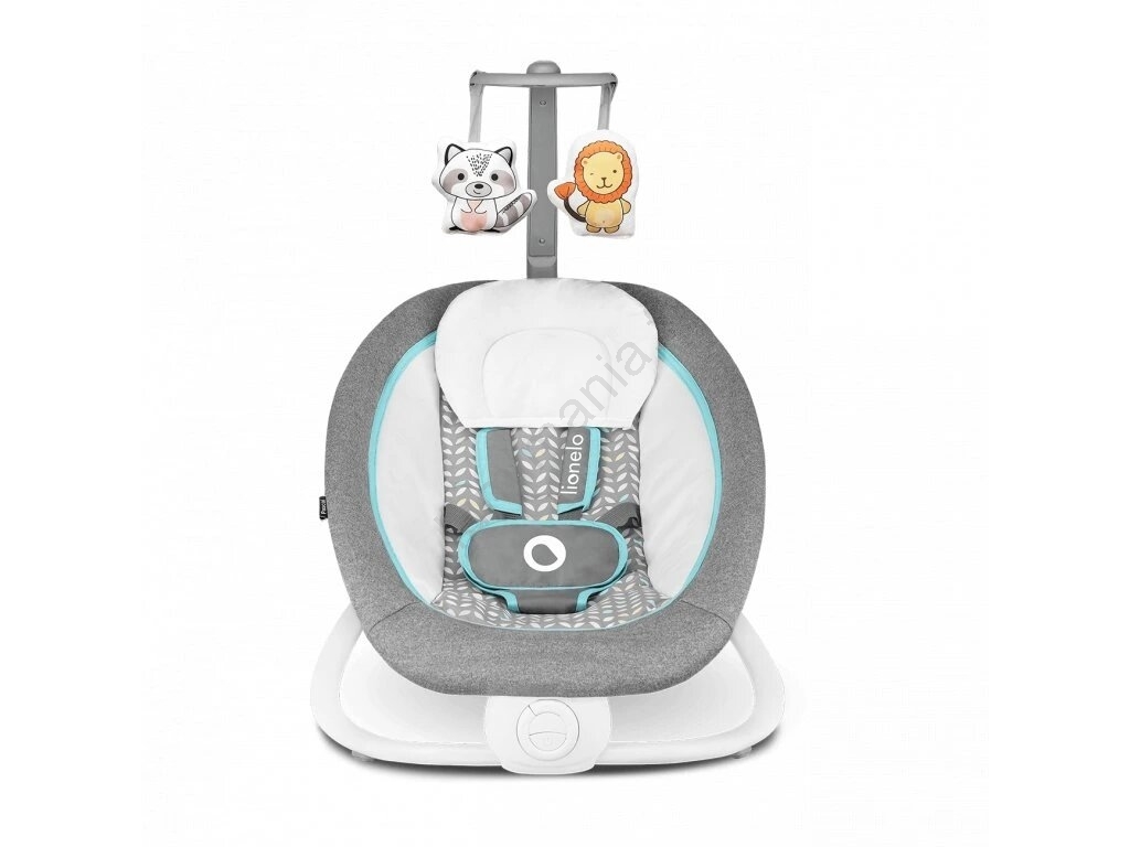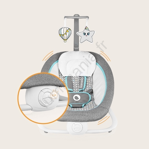 Lionelo - Balancelle vibrante pour bébé avec mélodie PASCAL 2xAA gris/turquoise
