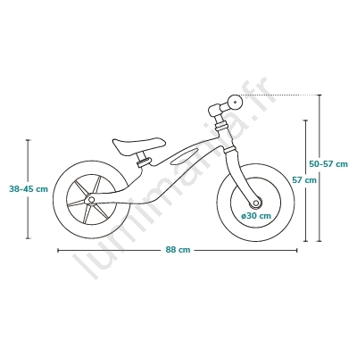 • Grâce à la selle réglable en hauteur (35 - 43 cm) et au guidon (50 - 57 cm).