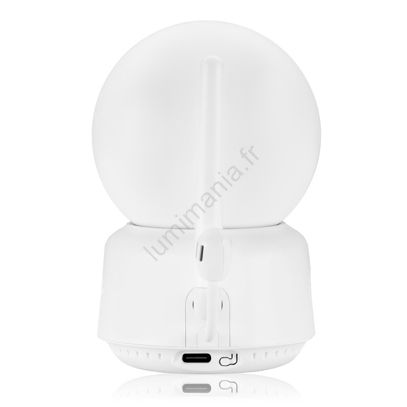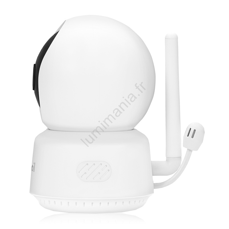 • Caméra 360° avec rotation motorisée et suivi de mouvement.