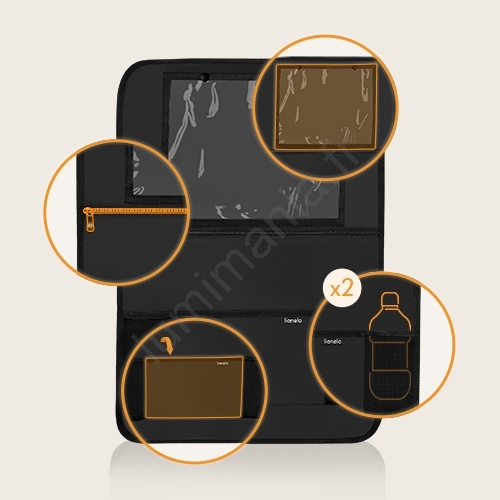 • Lionelo Seat Organizer est un organiseur pour voiture suspendu au dos du dossier du siège avant, qui aide à retenir l'attention de l'enfant pendant le trajet, à maintenir l'ordre dans la voiture et à protéger le siège contre les salissures (par exemple des chaussures de l'enfant).