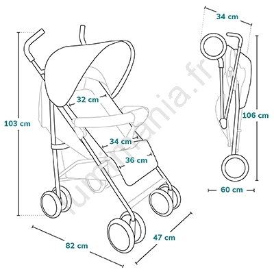 • Le pliage facile en format compact permet d'économiser de l'espace lorsque la poussette n'est pas utilisée.