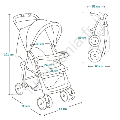 • La poussette dispose d'une barrière frontale en forme de plateau qui permet à l'enfant de poser sa bouteille ou sa collation pendant la promenade.