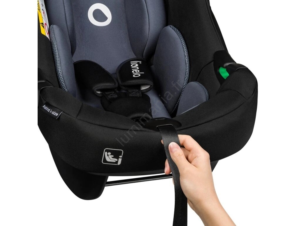 • L'ASTRID i-Size est conçue pour une installation dos à la route et dispose d'un harnais trois points et d'un appui-tête réglable pour une protection et un confort accrus.