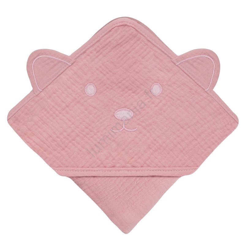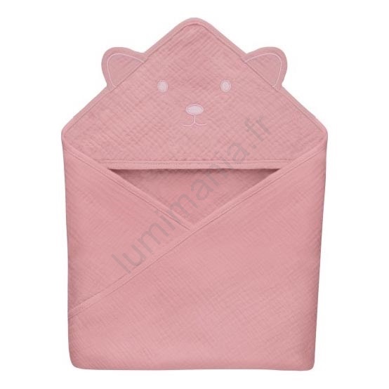 Lionelo - Serviette pour bébé à capuche en mousseline Pink Baby