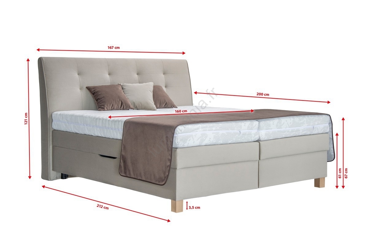 • Lit boxspring avec matelas et surmatelas.