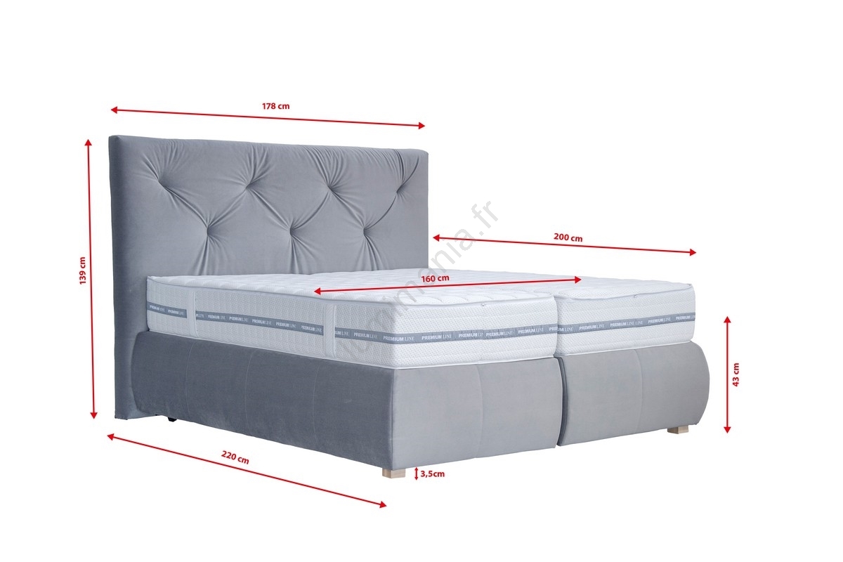 • Lit de luxe composé de trois couches assurant un confort maximal et un soutien ergonomique pendant le sommeil.