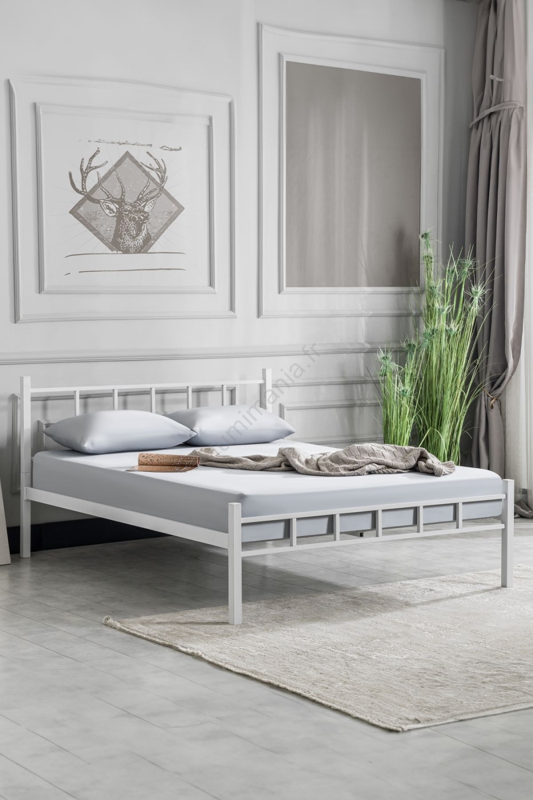 Lit deux places en métal ORMEL 120 x 200 cm, blanc — charge maximale 120 kg