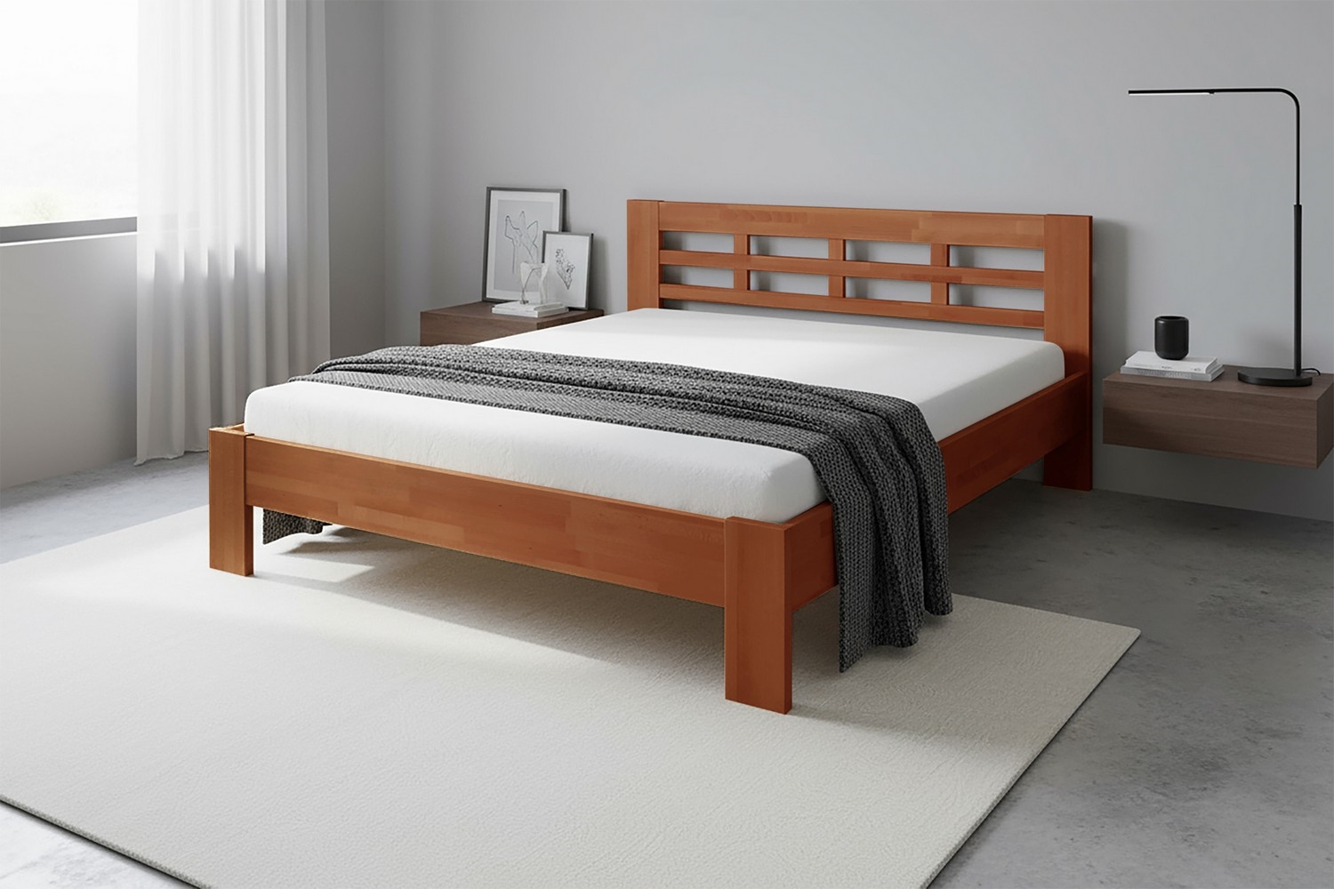 • Lit double en bois massif ANGELA 180x200 cm noyer clair