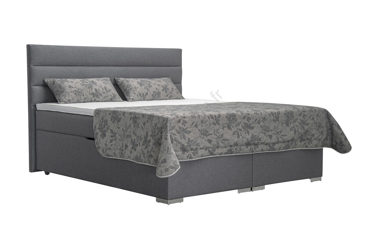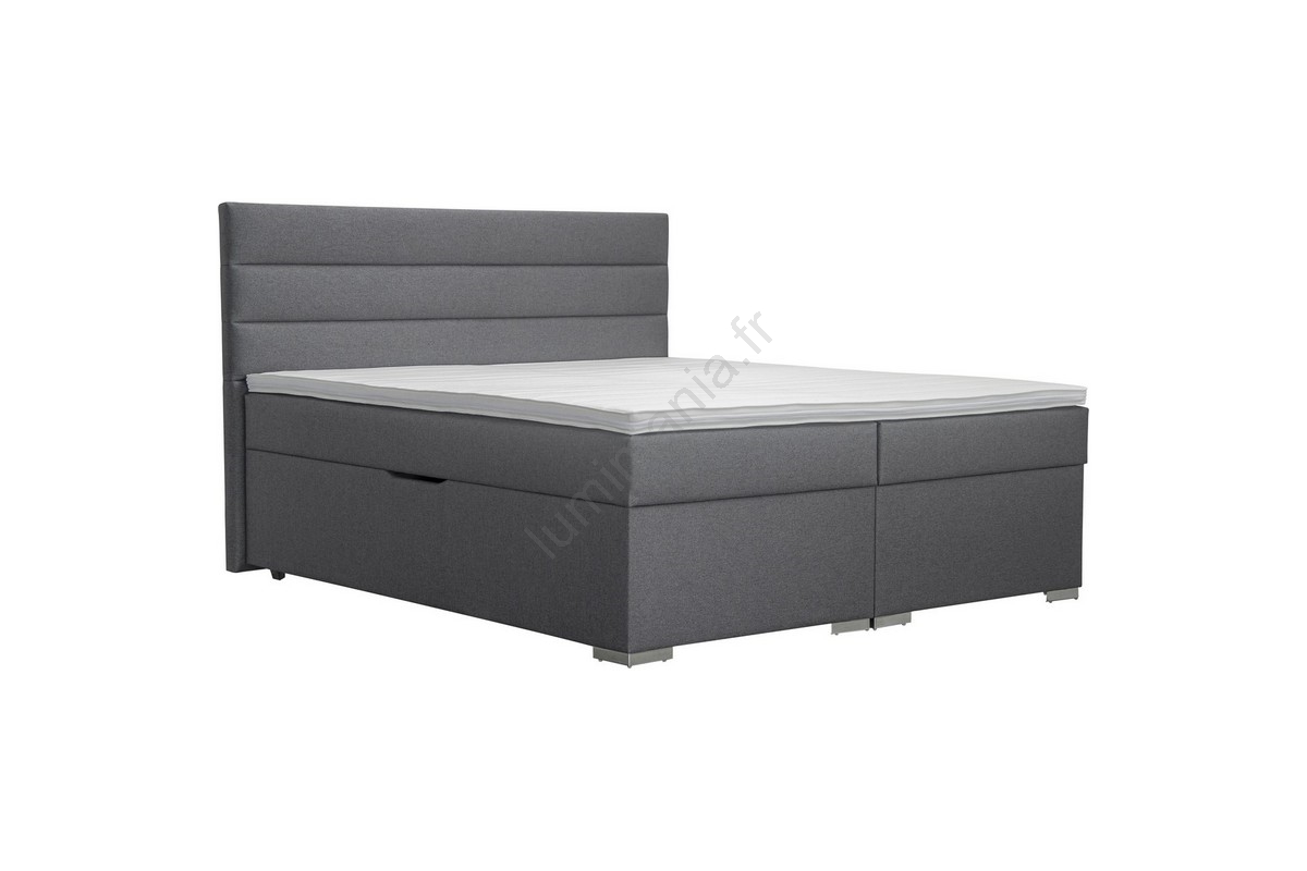 Lit tapissé avec rangement et matelas équipés de surmatelas NEW BOLERO 160x200 cm gris