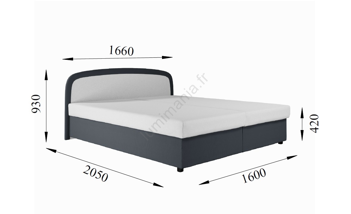 • Lit double rembourré avec matelas à ressorts, doté d'une tête de lit élégante et soignée.