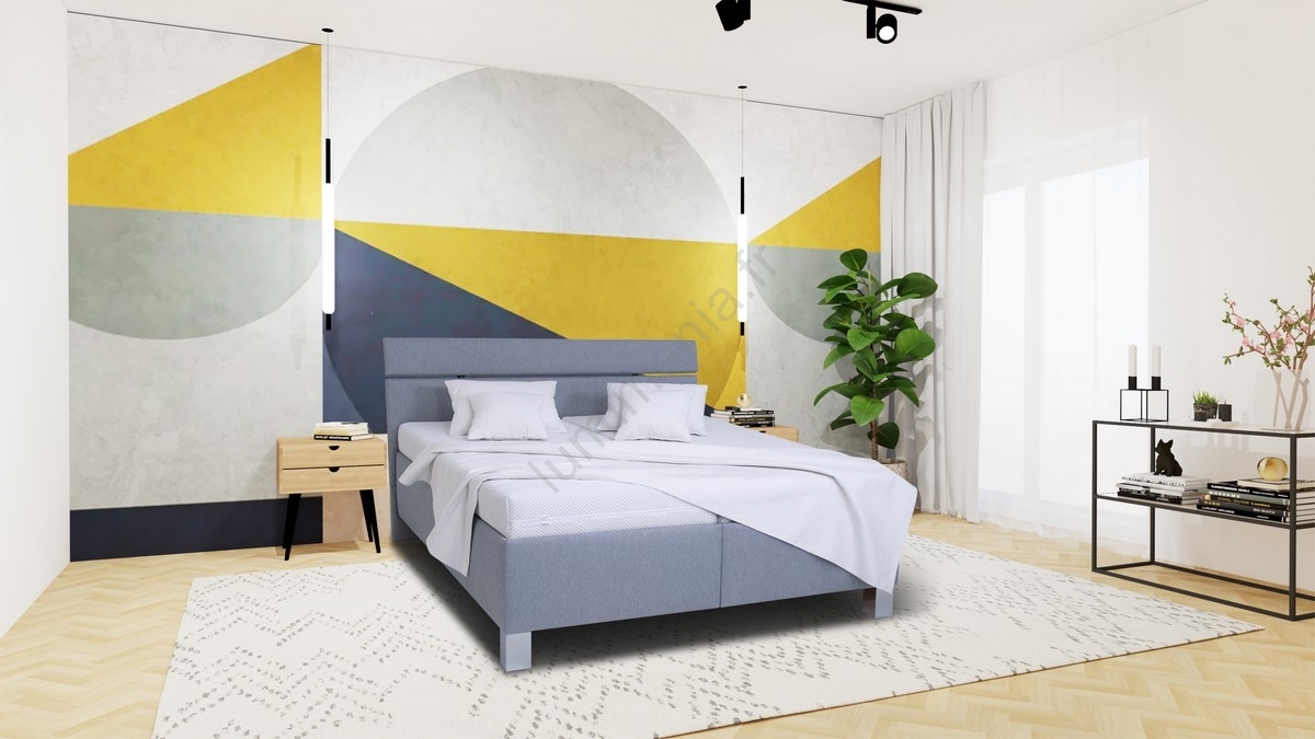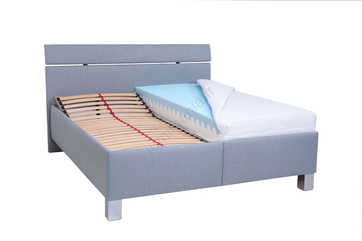 • Lit tapissé avec matelas et coffre de rangement ALIS 160x200 cm gris clair