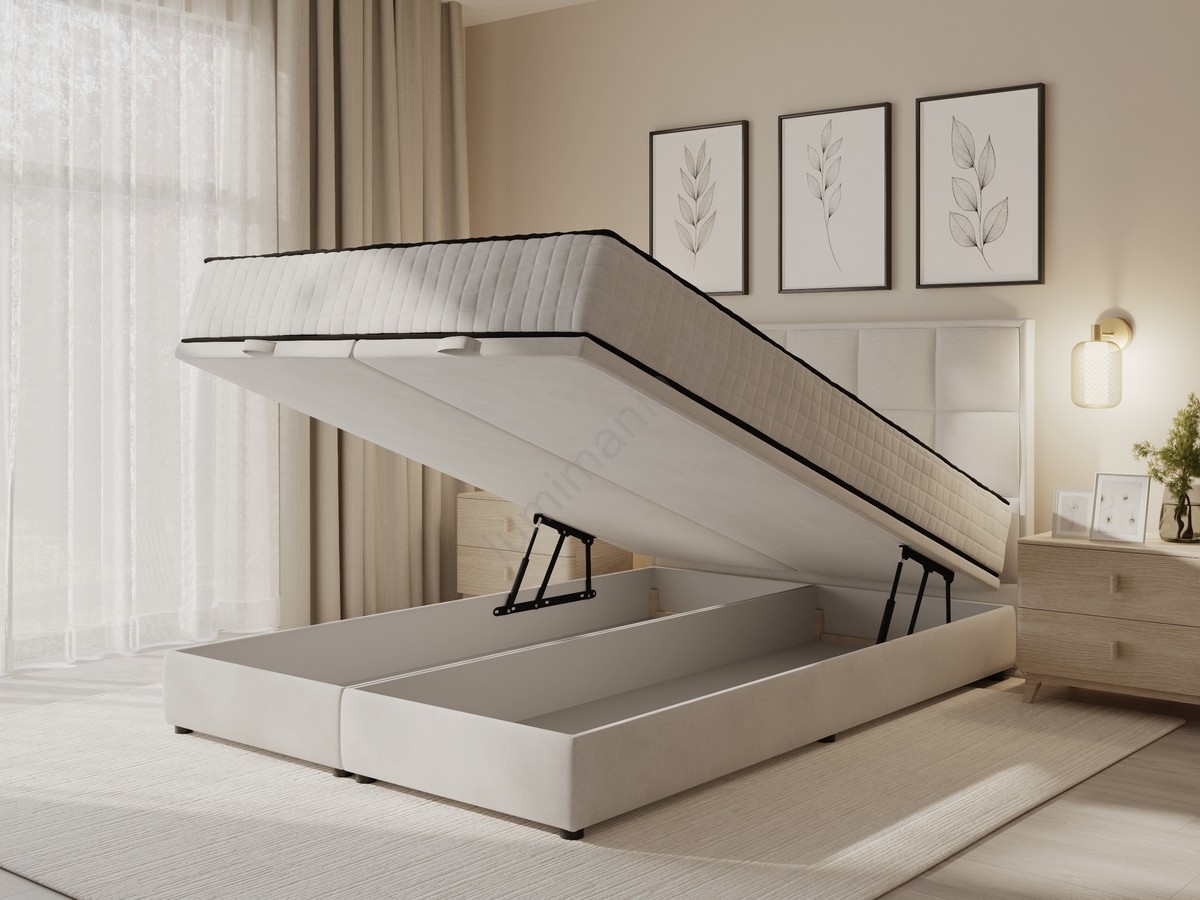 • Lit rembourré GRACE 140x200 cm avec matelas et espace de rangement, beige
