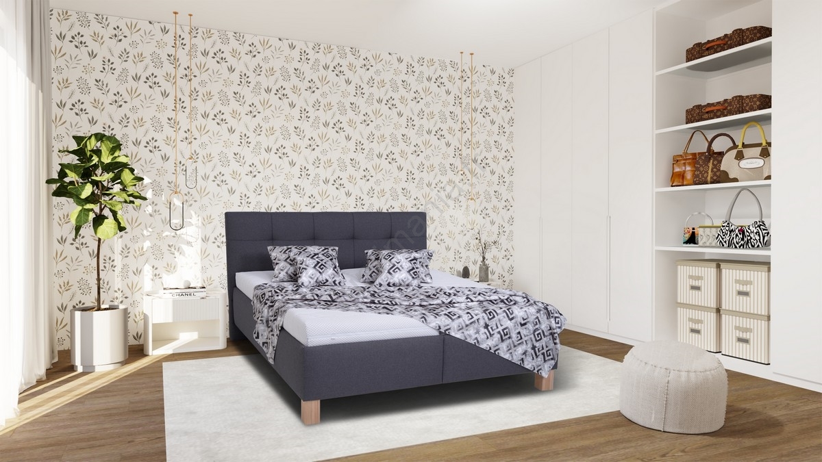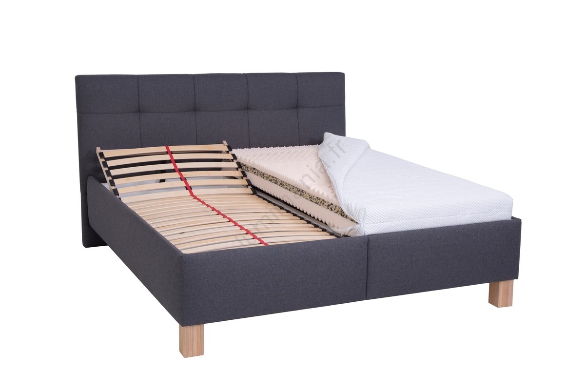 • Lit tapissé coffre MARIA 160x200 cm, gris, sans matelas