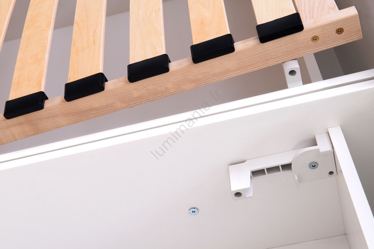 • Le lit est équipé d'un grand espace de rangement pour stocker la literie et d'autres objets.
