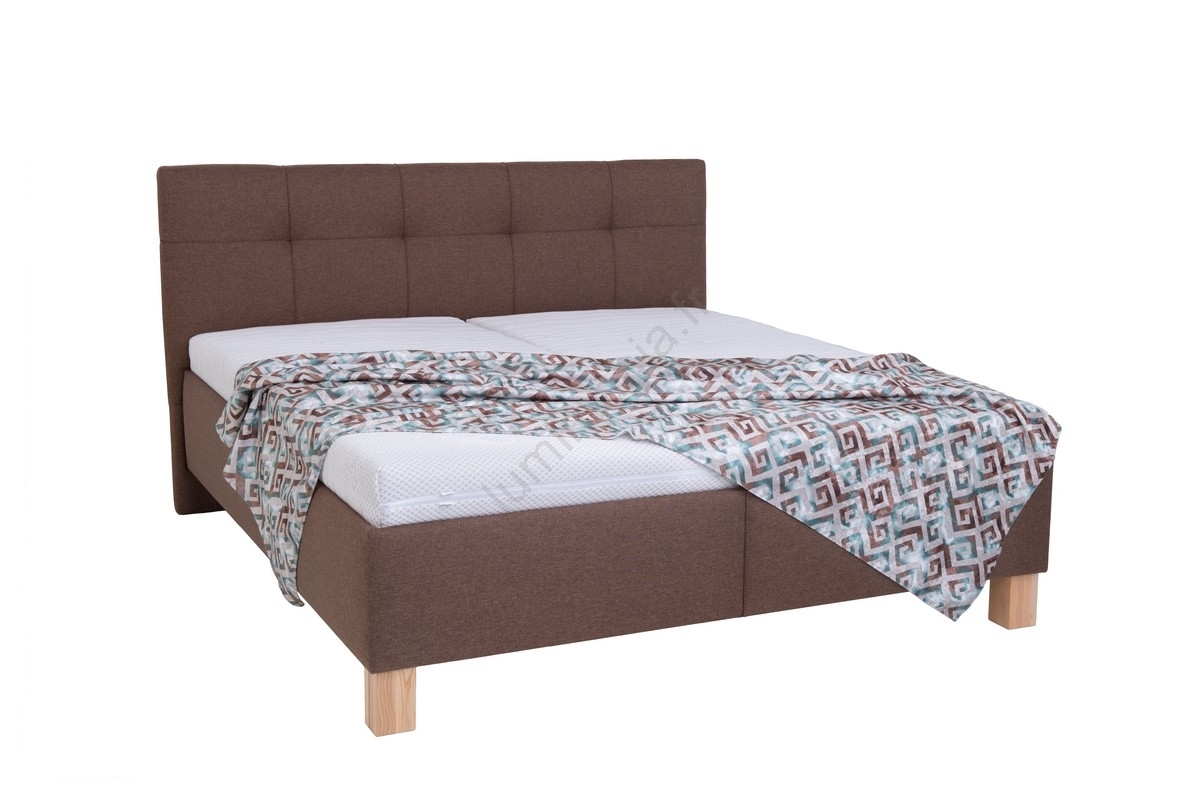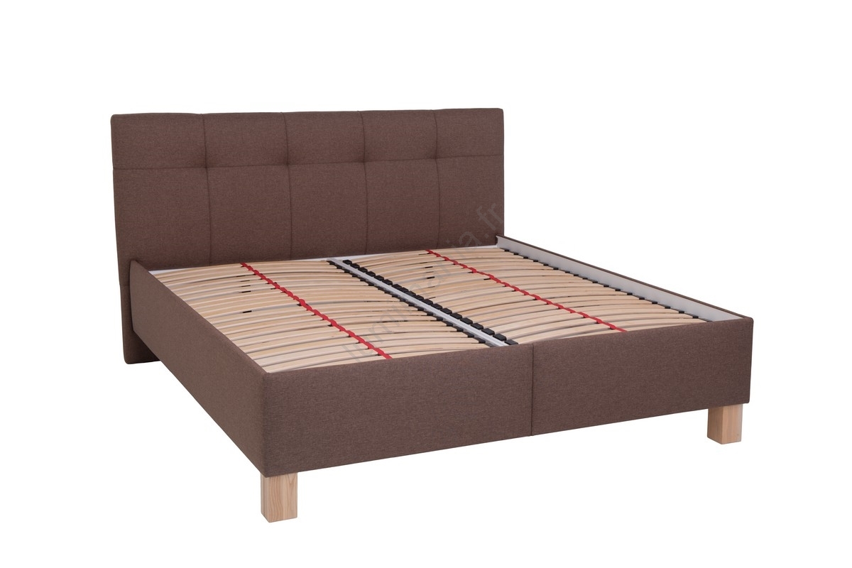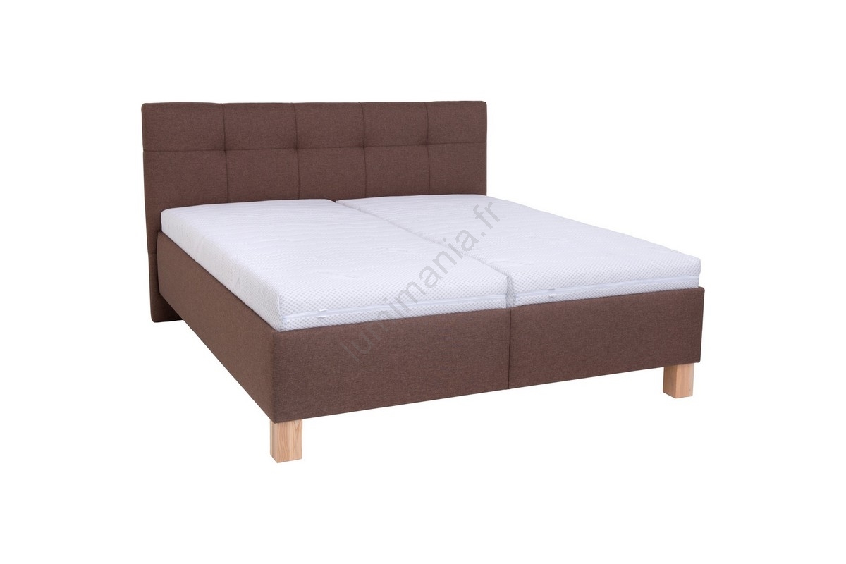 Lit tapissé MARIA 160 x 200 cm avec matelas et coffre de rangement, marron