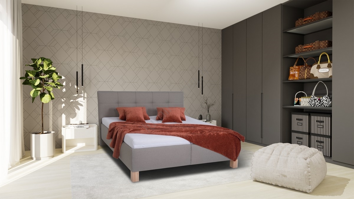 • Lit tapissé MARIA 180 x 200 cm avec matelas et coffre de rangement, gris