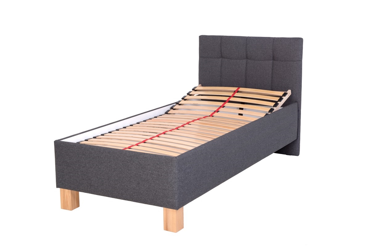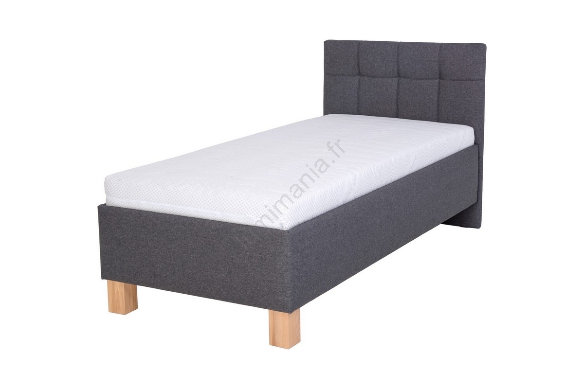 • Lit tapissé MARIA ONE 90x200 cm avec matelas et coffre de rangement, gris