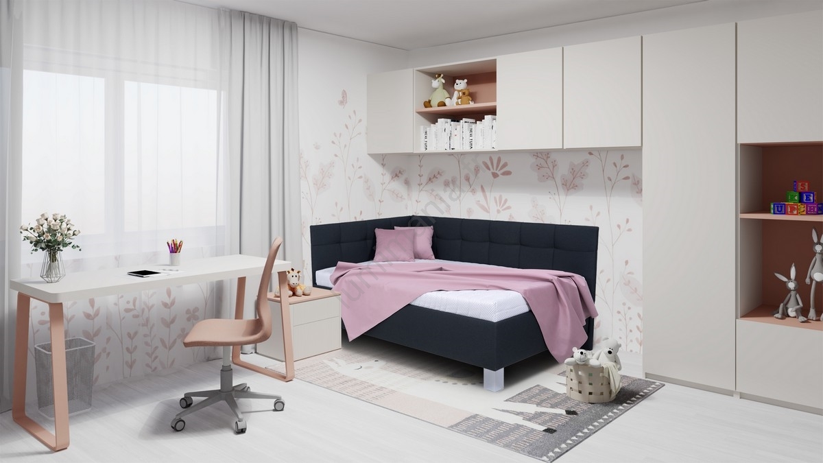 • Lit rembourré avec matelas et coffre de rangement MARIA PETITE 120x200 cm, anthracite
