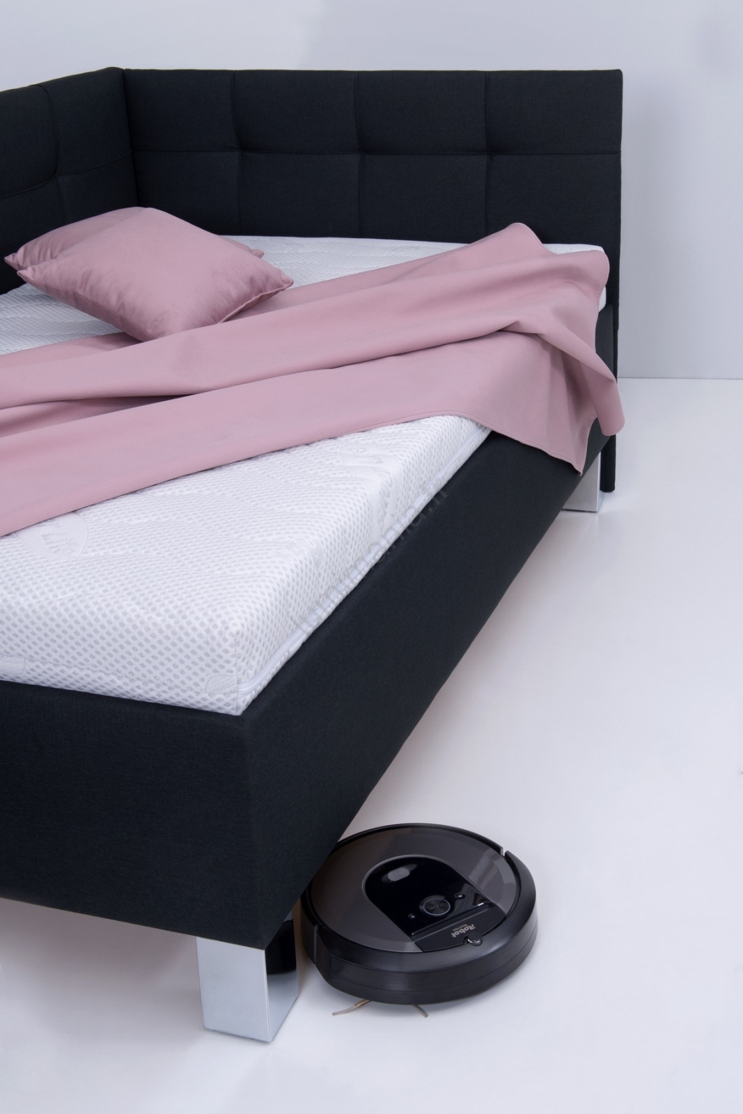 • Des pieds stables et au design soigné de 15 cm en chrome soulignent non seulement l'aspect moderne du lit, mais permettent aussi un nettoyage facile i avec un aspirateur robot.