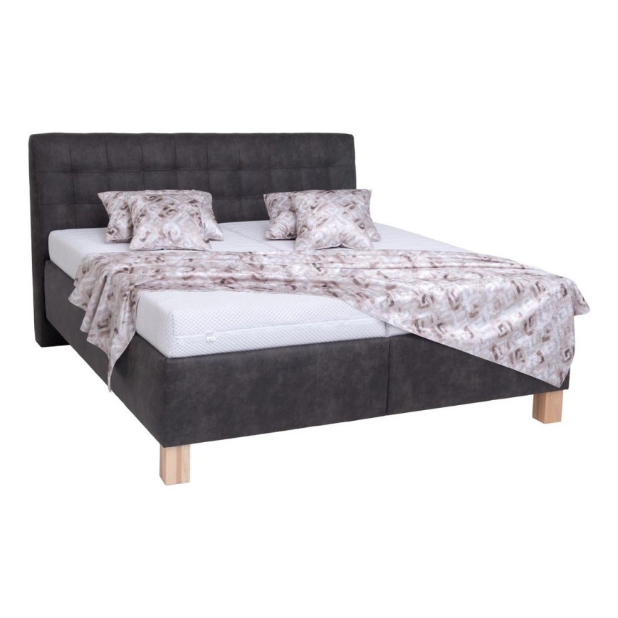 Lit tapissé VIOLET 160x200 cm avec matelas et coffre de rangement, gris foncé