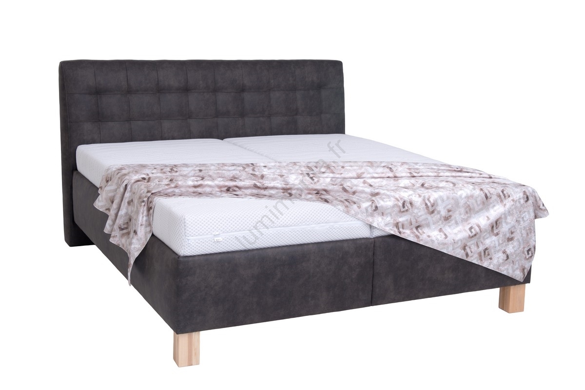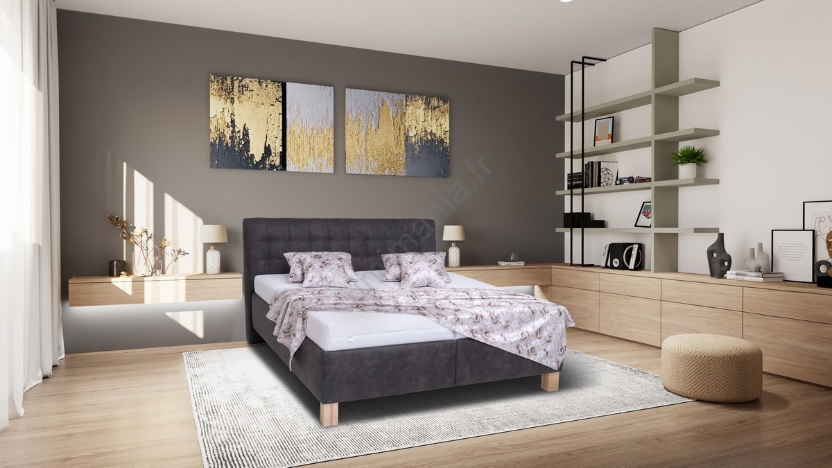 • Lit tapissé VIOLET 160x200 cm avec matelas et coffre de rangement, gris foncé