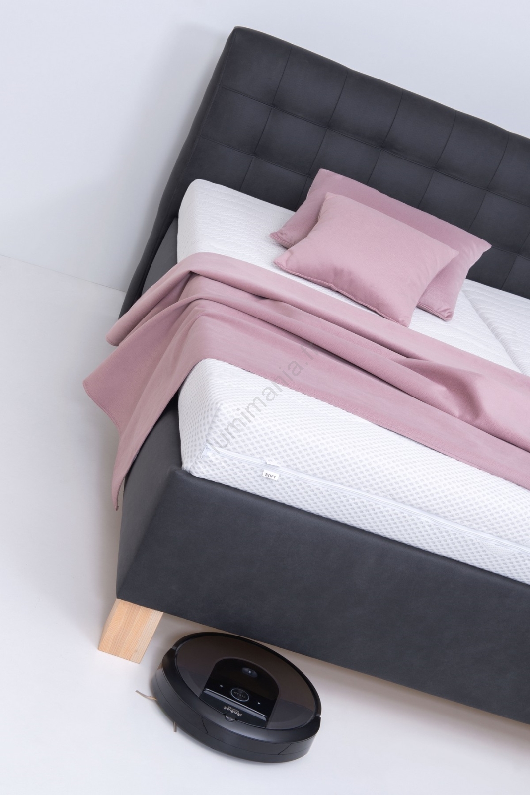 • Lit rembourré VIOLET 180x200 cm avec coffre de rangement intégré, sans matelas, gris foncé