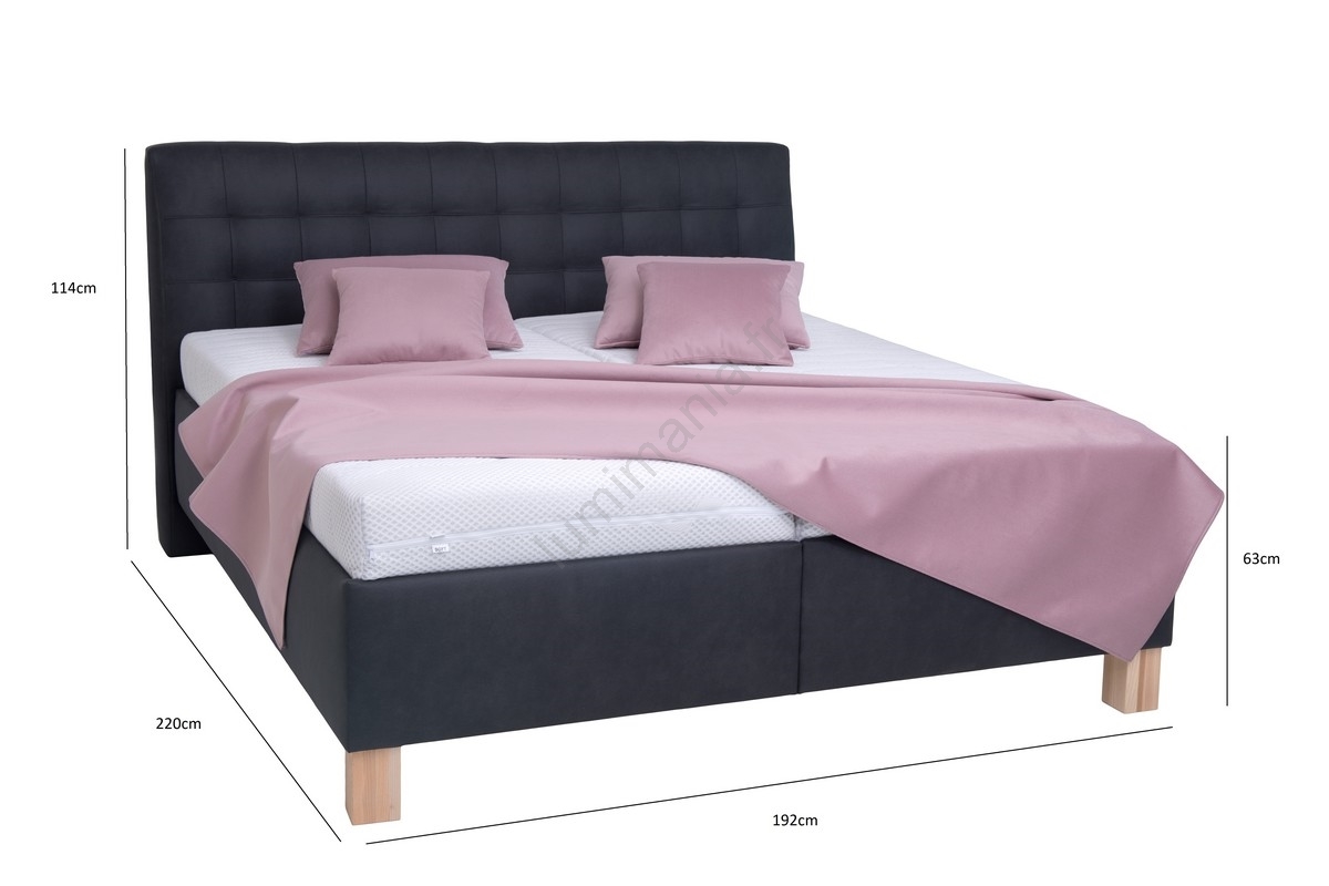 • Lit tapissé avec matelas et coffre de rangement VIOLET 180x200 cm anthracite