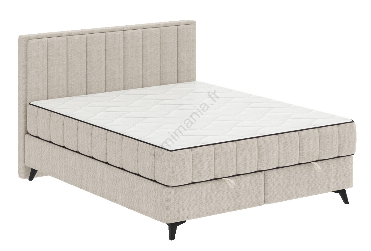Lit tapissé ALICIA 160x200 cm avec matelas et surmatelas inclus et coffre de rangement intégré, beige