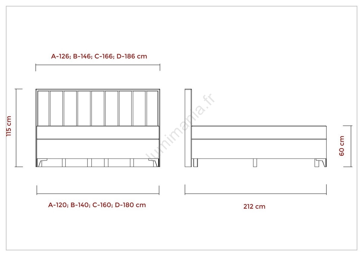 • Il repose sur élégants pieds en bois hauts (12 cm), qui confèrent légèreté tout en assurant la stabilité du lit.