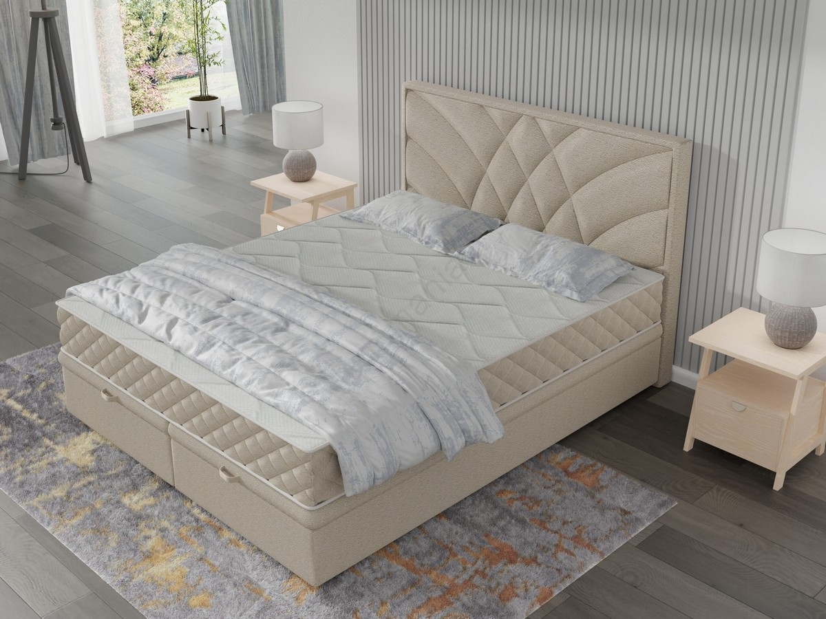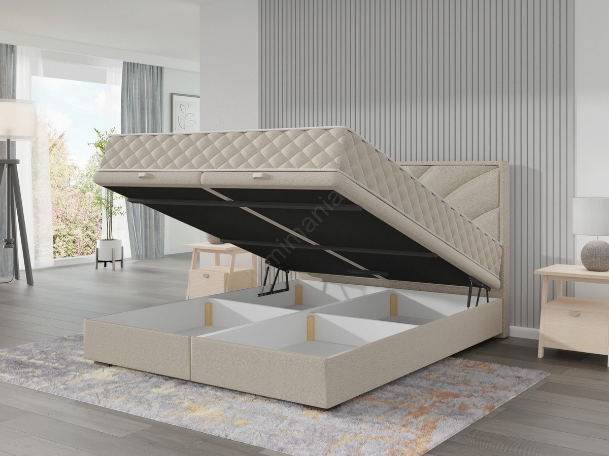 • Lit rembourré avec matelas et coffre de rangement GINA 140x200 cm beige