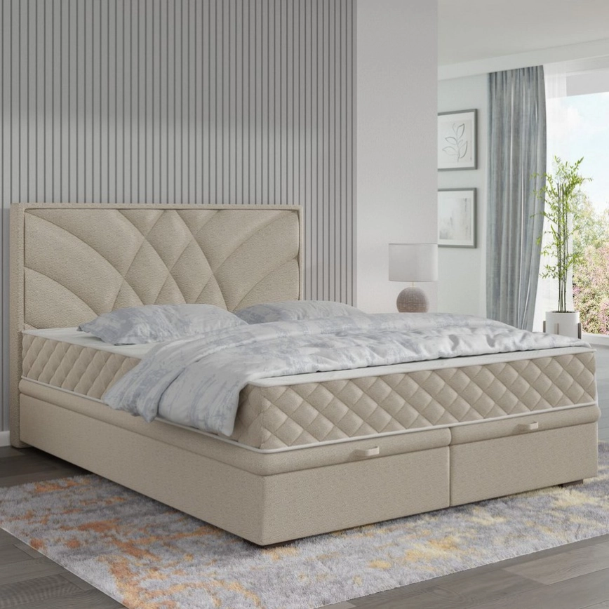 Lit tapissé GINA 160 x 200 cm avec matelas et coffre de rangement, beige