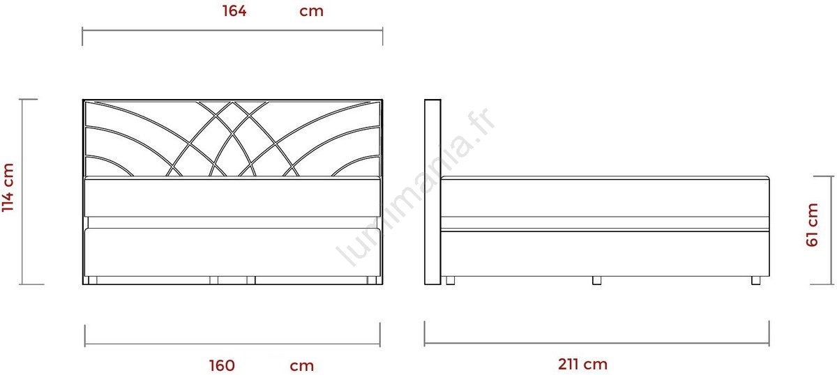 • Ce lit séduit par son design aux lignes douces et sa tête de lit originale ornée d'un matelassage en arc rappelant un élégant éventail ou un motif de feuille.