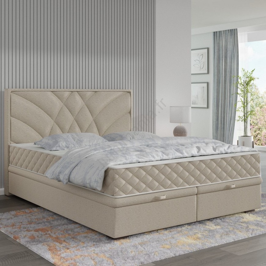 • Lit tapissé GRACE 180x200 cm avec matelas et coffre de rangement, beige