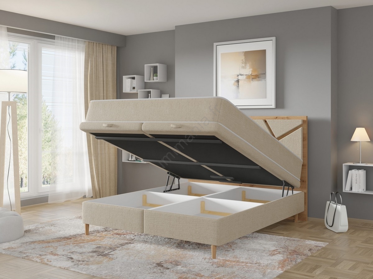 Lit rembourré NAOMI 180x200 cm beige avec matelas inclus et coffre de rangement