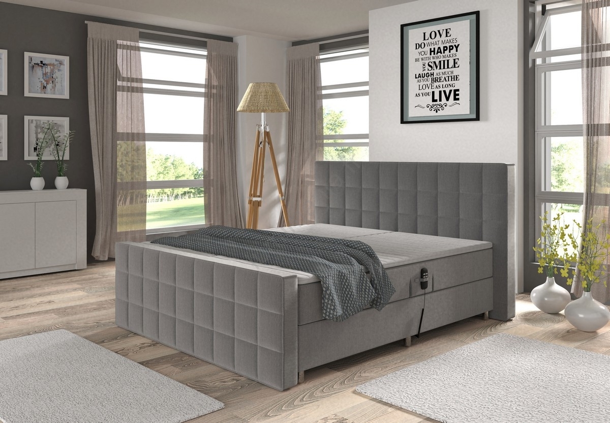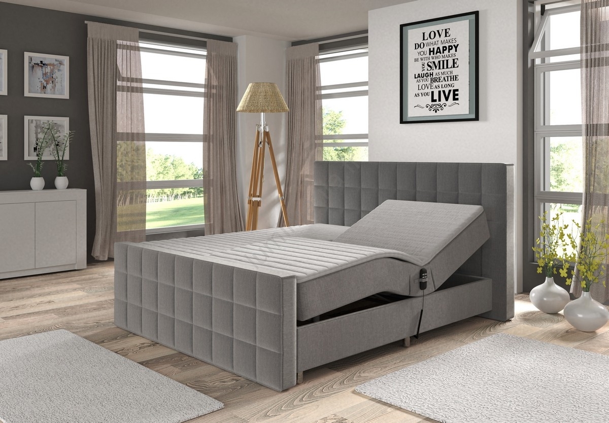 Lit rembourré réglable électriquement avec matelas et surmatelas HELEN 180 x 200 cm gris